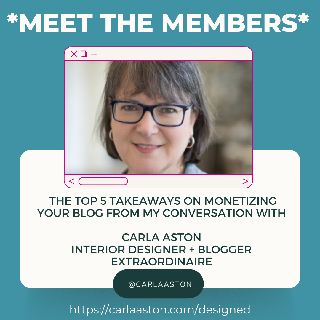 Carla shared many other invaluable tips, as well, but these were my own 5 top takeaways. I hope you will now subscribe to her excellent blog over on https://carlaaston.com/designed and follow her on Instagram at https://instagram.com/carlaaston