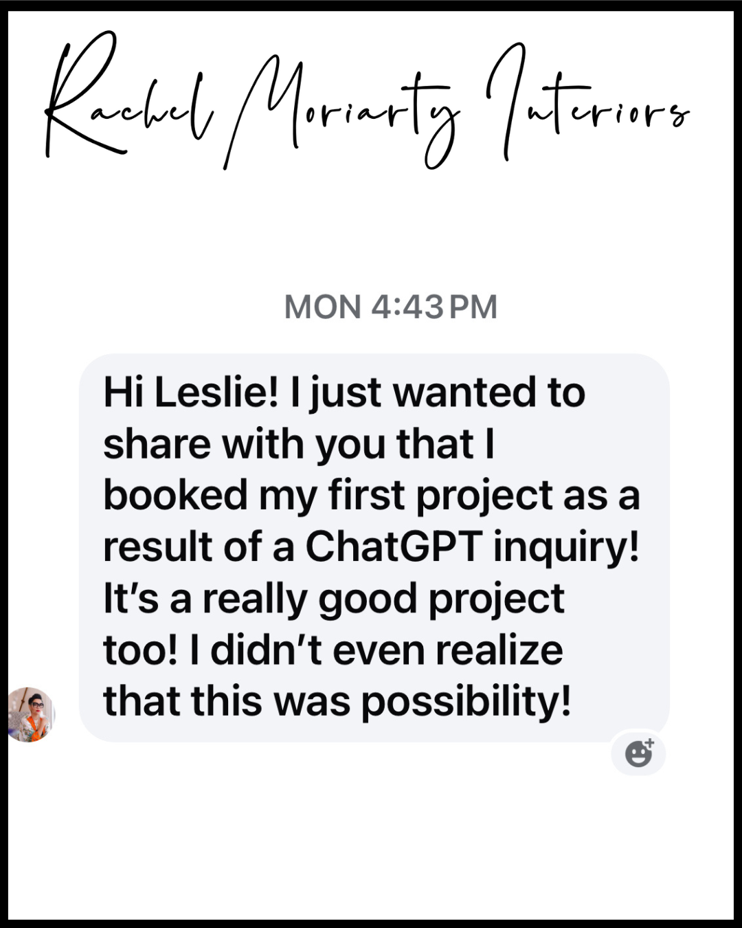 As you can see, Rachel didn’t yet realize that her potential clients were even using Chat GPT to search for designers.