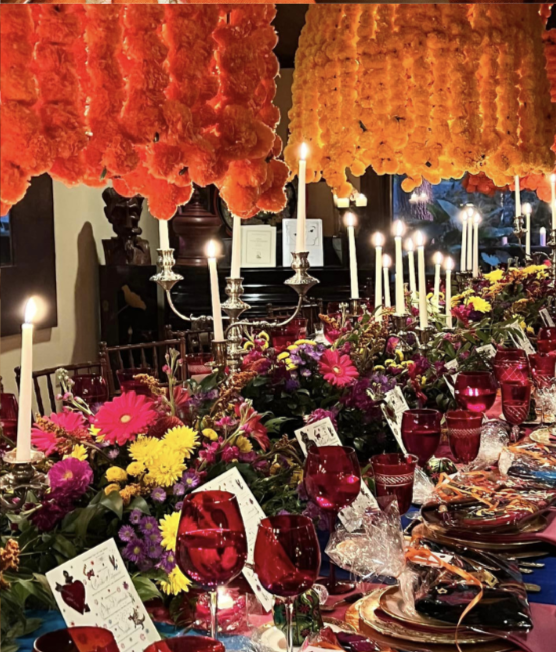 Above is the stunning tablescape in Alejandra Ochoa de Thompson’s home for her Day of The Dead party in October of 2022.