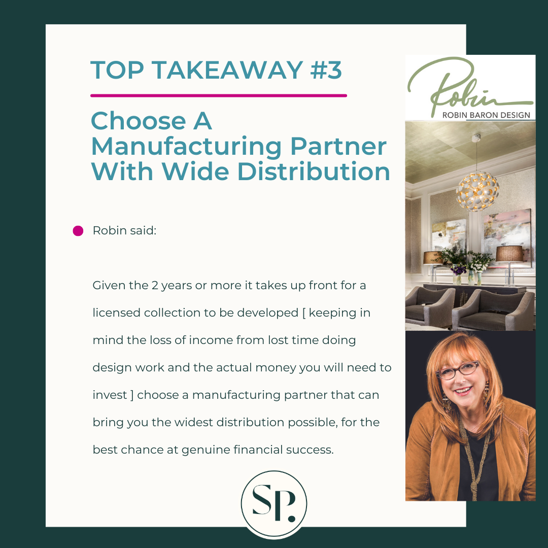 Robin shared with us how important it is to be prepared for how long it can take to develop a licensed collection, once the agreement has been signed with the manufacturer.